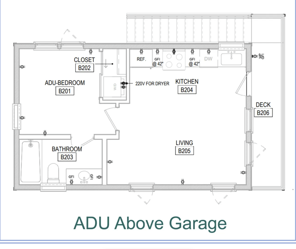 • ADU is located above the garage; no garage access for the ADU tenant
